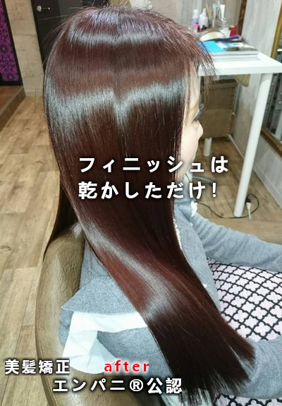 正統派髪質改善の美髪矯正は濃厚トリートメントで誤魔化す技術では無いので、完全な髪質改善効果を毛髪に宿します!